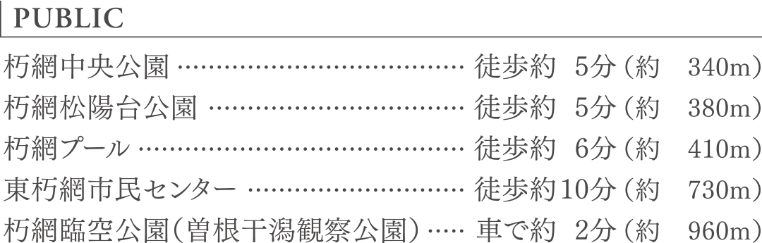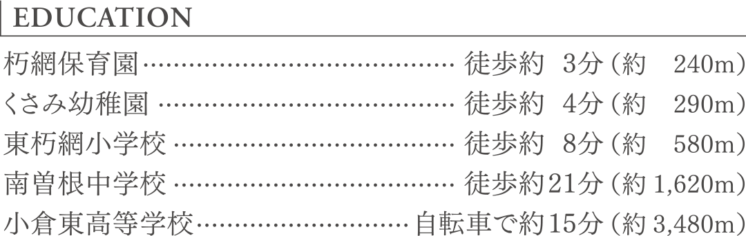ほかにも朽網中央公園をはじめ、春に満開を迎えるソメイヨシノが千本桜として親しまれている昭和池公園など、快適な暮らしの舞台に相応しい、大らかな生活環境が整っています。