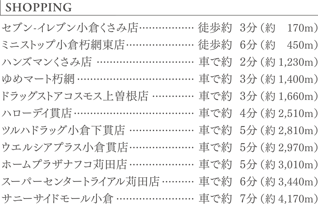また「サニーサイドモール小倉」をはじめ、多彩な施設が揃う「下曽根」駅までは、日豊本線でわずか1駅。